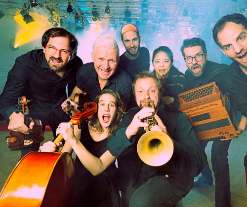 Das vom international renommierten Trompeten-Virtuosen und Stil-Tausendsassa Thomas Gansch initiierte Bandprojekt ›Alpen & Glühen‹ versteht sich als Supergroup herausragender Musiker:innen, die sich bei diesem Projekt zusammengefunden haben, um ihre verschiedenen musikalischen Sozialisierungen zu einem ästhetisch vielgestaltigen Klangkörper zu bündeln. Dabei treffen volksmusikalische Traditionen auf Jazz, filigranes Musizieren auf mitreißende Improvisationen, ein Boarischer mit viel humoristischem Groove auf einen ins Österreichische übersetzten indischen Raga. Was zunächst nach wildem Stilpluralismus klingen mag, verwebt sich auf der Bühne zu einzigartigen Klangwelten, die melancholisch, ekstatisch und humorvoll in einem sind.