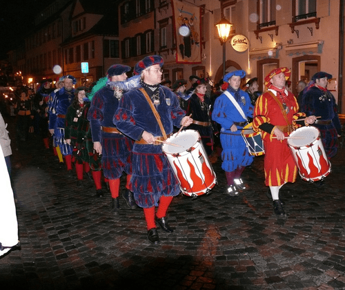 Mit großem Gefolge zieht Graf Konrad durch die Stadt und verkündet "ein siebentägiges Fest" für die Narren. Das Fasnet-Ausrufen ist der erste der zwölf Wolfacher Umzüge. Die Fackeln der Landsknechte verbreiten eine ganz besondere Stimmung bei diesem abendlichen Spektakel. Anschließend "Narrenhock" in der Schlosshalle und den Lokalen.