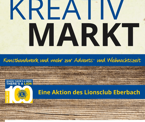 Es ist wieder einmal soweit - in Eberbach ist Kreativmarkt-Zeit! Der große Kreativ- und Kunsthandwerker-Markt, unter der Regie des Lions–Clubs Eberbach, findet täglich von 10.00 bis 17.00 Uhr , in der Stadthalle in Eberbach statt. Die Eröffnung erfolgt am Samstag um 10.00 Uhr. Der Kreativmarkt steht unter dem Motto „1000 und mehr Ideen“. Über 60 Aussteller präsentieren kreatives Kunsthandwerk auf über 1000 qm in der Stadthalle in Eberbach. Das Ausstellerangebot ist groß und auf hohem Niveau. Ob handbemalte Glasartikel, Holzarbeiten, Schmuck und Mineralien, Naturseifen, Schokoladenspezialitäten, Mode aus Seide, Wolle oder Leder, Stofftiere und Porzellanpuppen, kreative Kleidung und Taschen Töpfer- oder Korbwaren; es gibt Kunsthandwerk aus den verschiedensten handwerklichen Bereichen zu entdecken. Die Standflächen in der Stadthalle sowie im Foyer und der Empore sind voll ausgereizt. Die Besucher erwartet ein breites Angebot von künstlerischen Artikeln. Wir wollen Sie etwas einstimmen auf die bevorstehende Herbst-, Advents- und Weihnachtszeit. Der Markt soll nicht nur zum Anschauen und Kaufen dienen, sondern auch zum Nach- und Mitmachen anregen. Die Besucher können sich sicherlich die eine oder andere Anregung für ihre eigene Bastelwerkstatt holen. Schauen Sie den Handwerkern über die Schulter und kommen Sie den Ausstellern ins Gespräch. Hier können Sie fachsimpeln und neue Kontakte knüpfen. Für die professionelle Bewirtung der Markt-Gäste, sorgt wie immer der Lions-Club Eberbach mit hausgemachtem Kuchen, Kaffee und anderen Getränken sowie kleinen Snacks, die an den Tischen und Bänken im Foyer angeboten werden. Ein Informationsstand der Lions informiert über deren Arbeit und Ziele sowie das Clubleben. Der Lionsclub steht gerne für Fragen der Besucher zur Verfügung und freut sich über einen regen Informationsaustausch. Der gesamte Erlös der Eintrittskarten und Bewirtung kommt selbstverständlich wieder vollständig wohltätigen Zwecken unter dem Motto: „Aus der Region - für die Region“ zu Gute. Die Mitglieder des Lions-Clubs arbeiten ehrenamtlich und kostenfrei. Die Einnahmen aus dem Eintritt gehen an einen guten Zweck. Dem Lions-Club liegt nach dem Leitsatz: „We serve – Wir dienen“ besonders die Förderung von: Bildung, Erziehung, Kultur und Gesundheit, die Vereins und Sportförderung: Engagement für Kinder und Jugendliche sowie die Unterstützung nationaler und internationaler Hilfsprojekte am Herzen. Wir freuen uns auf eine breite Unterstützung durch viele Besucher beim Kreativmarkt.