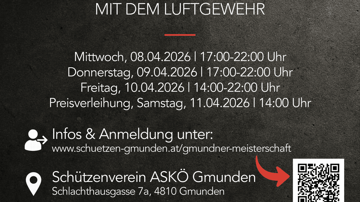 Der Bewerb findet am Schießstand des Schützenvereins ASKÖ Gmunden, Schlachthausgasse 7a, 4810 Gmunden (ehemaliger Schlachthof) statt.
