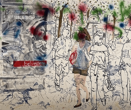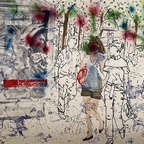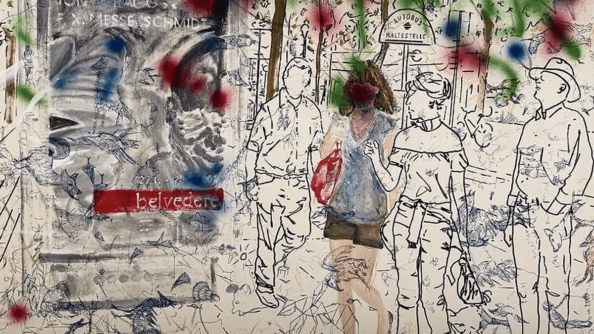 Die Wechsel zwischen Atelier und Familienalltag machen das Buch zu einem feinfühligen Zeugnis über das Spannungsfeld von Kreativität, Verantwortung und Selbstfindung. Ergänzt wird die Erzählung durch Liedtexte, die wie poetische Momentaufnahmen wirken – und die emotionale Tiefe der Geschichte auf musikalische Weise erweitern. Die Ausstellung „Farbflecken im Sternenstaub“ öffnet den Blick in einen Spielraum. Kerstingers Werk bewegt sich zwischen Zeichnung und Malerei, zwischen spontanem Gestus und bewusster Formulierung. Seine Linien und Farbflecken entstehen im Moment der Bewegung, doch sie verweigern sich nicht der Codierung: Farbe, Fläche und Spur eröffnen Bildräume, in denen Zufall und Kontrolle wirksam werden. Werke, in denen das Flüchtige nicht eingefangen, sondern gefeiert wird