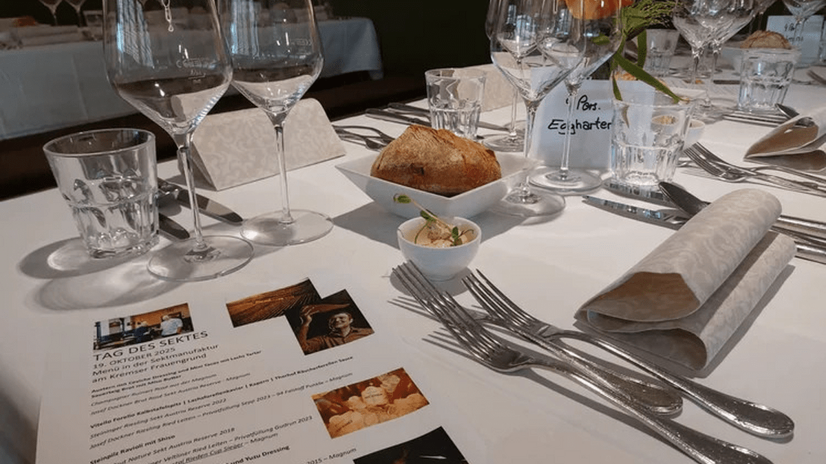 Freunde des perlenden Getränks und von gutem Essen sollten sich den 25. Oktober 2026 vormerken: Familie Dockner serviert ihrer Sektmanufaktur am Kremser Frauengrund zu einem mehrgängigen Gourmetmenü prickelnde Preziosen aus dem eigenen Haus, aber auch von den besten Herstellern Österreichs und der Champagne.