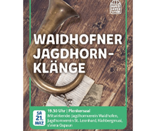 Der frisch gekürte Europameister, der Jagdhornverein Waidhofen, lädt zu einem außergewöhnlichen Konzertabend ein und präsentiert dabei heimisches Kulturgut in seiner klangvollsten Form. Im Mittelpunkt der Veranstaltung stehen musikalische Exzellenz, Begeisterung für das jagdliche Brauchtum und gesellige Atmosphäre.