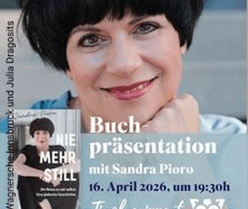 Wir laden Sie sehr herzlich ein zur Buchpräsentation von „Nie mehr still“ mit Autorin Sandra Pioro.