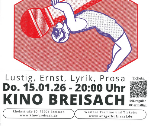 hosted by Ansgar Hufnagel Lustis, Ernst, Lyrik Prosa ... es ist für Jeden etwas dabei. Lassen Sie sich beim "Poetry-Slam" von verschiedensten Texten, Gedichten und Geschichten überraschen. Eintritt: 14,00 €, ermäßigt: 8,00 €