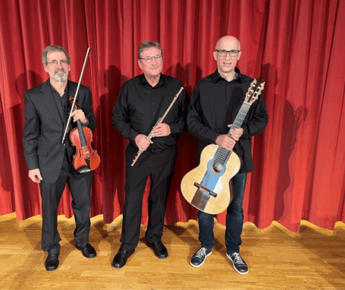 So konzertiert das bekannte Molino -Trio am Sonntag, 11.1.2026 um 15,00 Uhr im Gästezentrum Bad Hall. Kurt Huemer (Querflöte), Walter Medicus (Viola und Violine) und Rainer Falk (Gitarre) musizieren seit 1984 in dieser Formation. Bei diesem Konzert bringen sie Musik aus der Biedermeierzeit (ca. 1800-1870) und eigene Kompositionen.