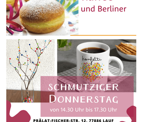 Närrische Plauderstub mit Kaffee und Berliner Plaudern und Kaffee trinken am Schmutzigen Donnerstag