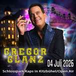 Am 04. Juli 2026 lädt Gregor Glanz zu einem ganz besonderen Open-Air-Konzert in den stimmungsvollen Schlosspark Kaps in Kitzbühel ein. Gemeinsam mit seinem Orchester und hochkarätigen Überraschungsgästen präsentiert er einen musikalischen Sommerabend voller Emotionen, Eleganz und unvergesslicher Momente.