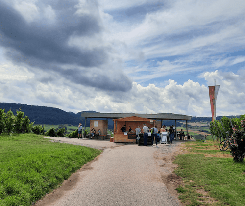 Ausschank am Ranzenberg 2026 – Regionaler Genuss für Radfahrer, Wanderer und Spaziergänger mit einzigartiger Aussicht in das Steinbacher Tal. Die Aussichtsplattform am Ranzenberg ist ein beliebter Rastplatz für Wanderer und Radfahrer. Der Blick ins Steinbacher Tal ist einmalig und bei gutem Wetter erkennt man sogar den Katzenbuckel im Odenwald am Horizont. Da fehlen nur noch ein guter Tropfen der einheimischen Wein- und Obstbaubetriebe und eine kleine Stärkung. Einige Betriebe haben sich auch in diesem Jahr zusammengetan und werden an einigen Wochenenden samstags, sonntags und feiertags eine Bewirtung am Ranzenberg anbieten.