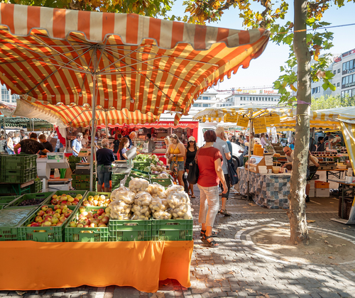 Wochenmarkt und Freiluft Food-Court in einem: Auf dem Platz „Konstablerwache“ gibt’s regionale Produkte und dazu frisch zubereitete Spezialitäten aus Hessen.  Direkt an der Zeil, Frankfurts größter Shopping-Straße, wird jeden Donnerstag und Samstag die frische Ernte der Region ausgelegt. Auf dem großen Platz und Verkehrsknotenpunkt „Konstablerwache“, in Frankfurt auch liebevoll „Konsti“ genannt, findet dann seit mehr als 30 Jahren der Erzeugermarkt statt. In vielen Frankfurter Haushalten ist der Markt eine feste Institution im wöchentlichen Einkaufsplan: Hier gibt’s an mehr als 50 Ständen Obst und Gemüse, Wurst- und Backwaren, Honig, Blumen oder lokalen Wein. Und wer bei dem Anblick der vielen frischen Produkte Hunger bekommt, kann auch gleich vor Ort probieren: Von vor Ort zubereiteten Pilzgerichten über Bio-Bratwürste bis zum hausgemachten Handkäs und anderen hessischen Originalen – gerade Dank der Imbisse zwischen den Marktständen ist der Erzeugermarkt bei schönem Wetter zu einem echten Lieblingstreffpunkt geworden.