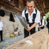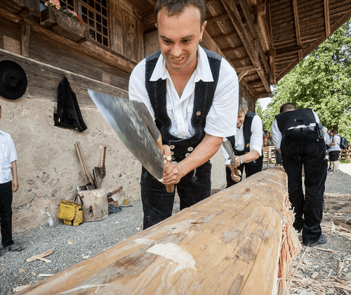 Zimmererlehrlinge lernen alte Zimmermannskunst Alte Zimmermannskunst Zimmererlehrlinge üben sich in alten Techniken. Kooperation mit dem Berufsförderungswerk der Südbadischen Bauwirtschaft GmbH, Bühl.