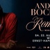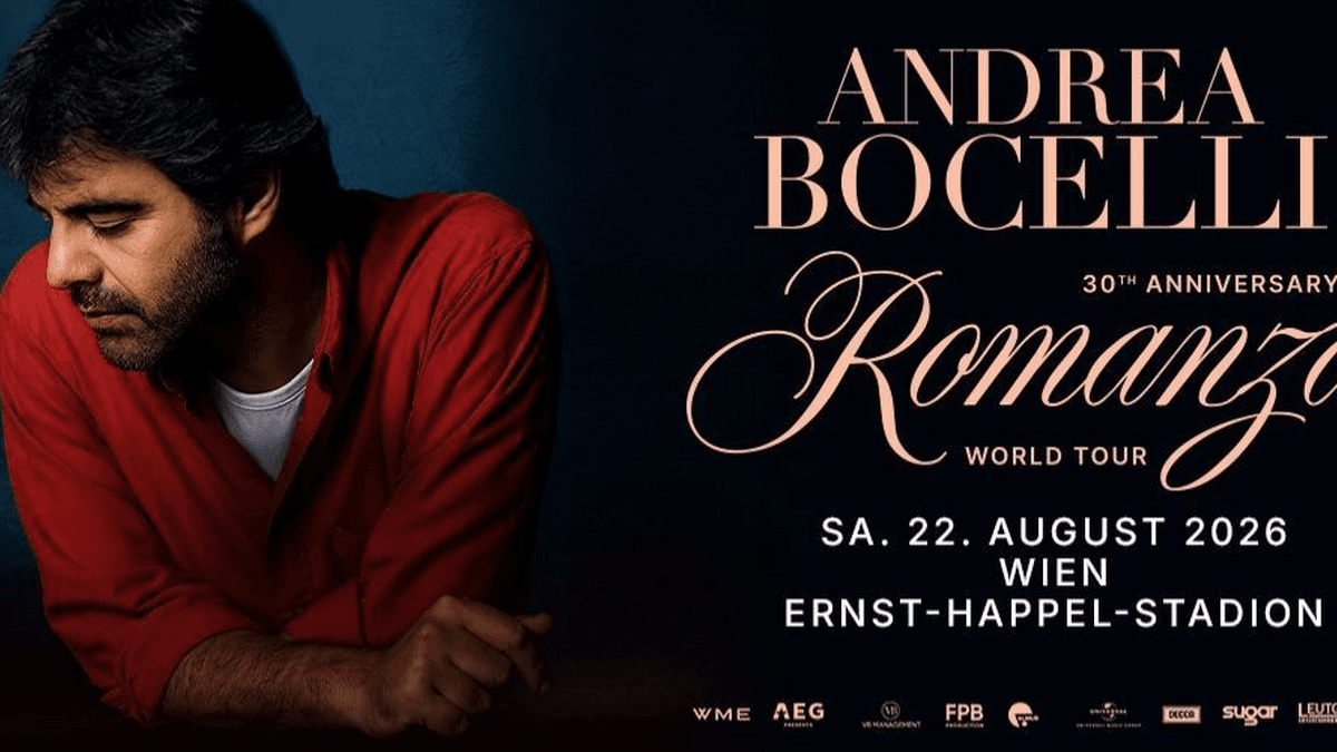 Andrea Bocelli kommt mit großem Orchester & Chor im Sommer 2026 im Rahmen seiner Romanza 30th Anniversary-Welttournee für ein einziges spektakuläres Konzert im gesamten deutschsprachigen Raum nach Wien. Am 22. August 2026 wird der weltberühmte Tenor das Ernst-Happel-Stadion in einen Abend voller Emotion, Eleganz und musikalischer Weltklasse verwandeln.