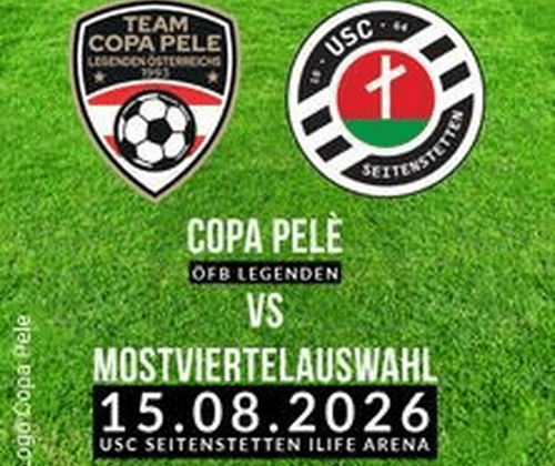Am 15. August 2026 verwandelt sich der Sportplatz in Seitenstetten in den Mittelpunkt des österreichischen Fußballs: Die Copa Pelé steht bevor – ein einzigartiges Ereignis, das sportliche Leidenschaft, Fair Play und große Emotionen vereint.