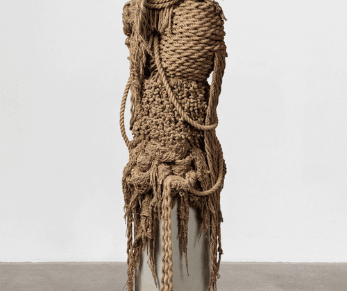Im Kirchenraum entfalten sich vertikale, säulenartige Stoffskulpturen, die aus gehärteten Textilbahnen und Seilen bestehen und aus schlichten Betonsockeln herauswachsen. Sie wirken architektonisch und körperhaft zugleich und betonen die Höhe und klaren Linien des Langhauses. Die abstrahierten Formen erinnern an textile Hüllen. Sie verweisen auf den Tschador, einen bodenlangen, dunklen, im Iran traditionellen Umhang, als Symbol sowohl für Schutz als auch für Einschränkung. Das Material – in Acryl und Leim versteift – behält Spuren seiner ursprünglichen Flexibilität und erzeugt eine Spannung zwischen Starrheit und Bewegung.