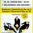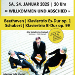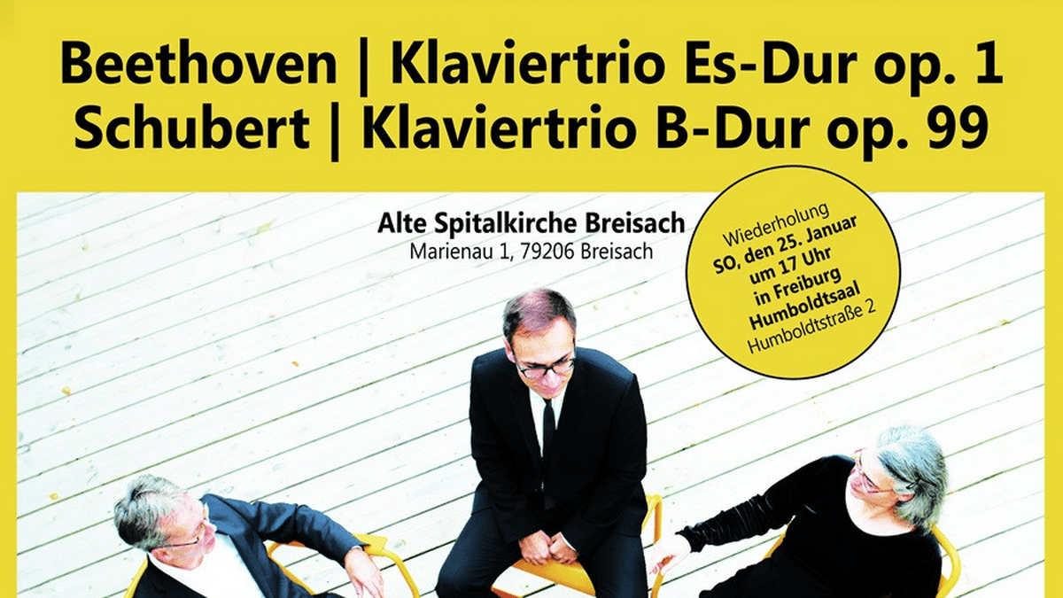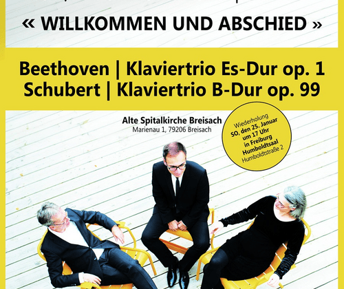 "Willkommen und Abschied" Beethoven - Klaviertrio Es-Dur op.1 Schubert - Klaviertrio B - Dur op. 99 Klavier: Johannes Tolle Violoncello: Hristo Kouzmanov Violine: Marie Desgoutte Karten bei Reservix oder in der Breisach-Touristik