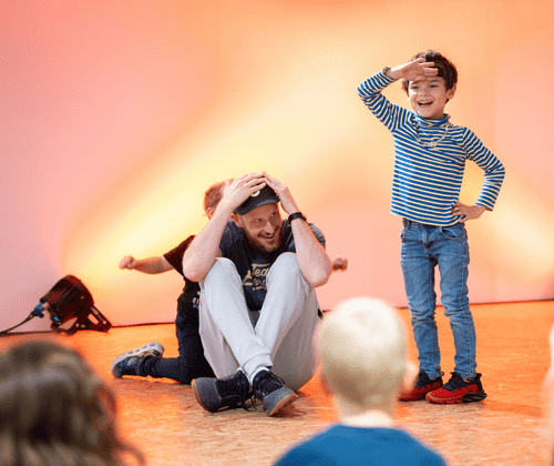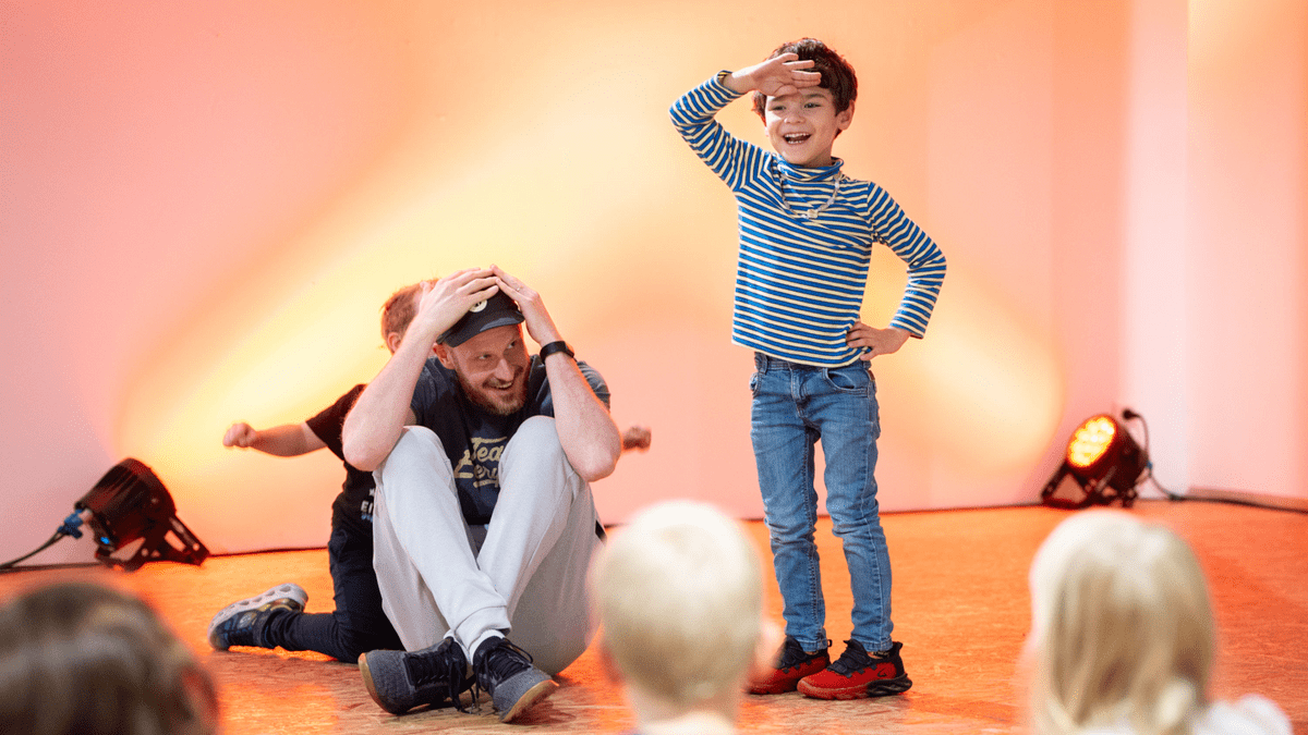 Lust, etwas Besonderes mit deinem Lieblingsmenschen zu erleben? In unserem Improtheaterkurs für Eltern und Kinder verbringt ihr bewusst Zeit miteinander, lacht, spielt, probiert Neues aus und habt gemeinsam richtig viel Spaß. Lust, etwas Besonderes mit deinem Lieblingsmenschen zu erleben? In unserem Improtheaterkurs für Eltern und Kinder verbringt ihr bewusst Zeit miteinander, lacht, spielt, probiert Neues aus und habt gemeinsam richtig viel Spaß. Hier geht es nicht darum, „alles richtig zu machen“, sondern darum, gemeinsam Neues zu entdecken und miteinander zu wachsen – mit Leichtigkeit, Vertrauen und ganz viel Freude. In spielerischen Improvisationsübungen taucht ihr als Familie in fantasievolle Welten ein: Vielleicht verwandelt ihr euch in eine Piratencrew auf Schatzsuche, erfindet gemeinsam ein Märchen oder löst als Tierfamilie ein lustiges Problem. Die Geschichten entstehen spontan – aus euren Ideen, eurer Neugier und eurem Miteinander. Im gemeinsamen Spiel erlebt ihr wertvolle Zeit, in der Lachen, Nähe und Kreativität im Mittelpunkt stehen. Ihr hört einander zu, greift Ideen auf und gestaltet gemeinsam kleine Abenteuer, bei denen alle mitmachen können – unabhängig von Alter oder Vorerfahrung. Die Bühne wird zu einem sicheren Raum, in dem Fantasie wachsen darf und besondere Familienmomente entstehen.
