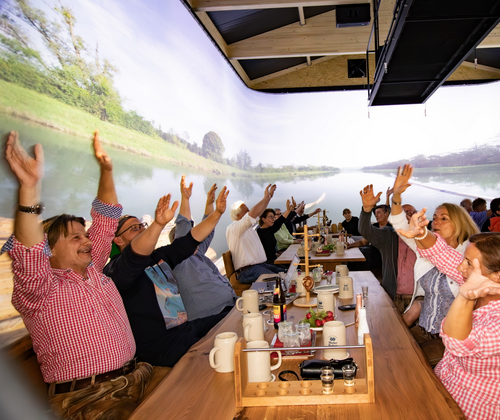 Das besondere 5D-Freizeiterlebnis für Gruppen, Familien oder Vereine. Begeben Sie sich auf eine multisensorische Reise, in der Sie auf einem Floss durch imaginäre Gewässer treiben und durch rasante Stromschnellen manövrieren – begleitet von Wind, Geräuschen und Düften. Dazu gibt es musikalische Unterhaltung sowie Speisen vom Buffet und Getränke. LEISTUNGEN 4-stündiges 5D-Erlebnis musikalische Unterhaltung Speisen vom Buffet und Getränke