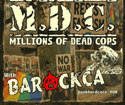 MILLIONS OF DEAD COPS (MDC) are the hardcore/punk pioneer from 1979 US. MDC aka Millions of Dead Cops, Multi Death Corporation, Millions Of Dead Children are kicking it into high gear w their 25th European tour. MDC is a notorious anti-fascist hardcore punk rock icons, MDC, have come roaring back with a vital new album of unflinching political anthems. War Is A Racket, finds singer and political activist Dave Dictor continuing the band’s 45+ year legacy with a supercharged set of radical punk rock screeds that are as unflinching lyrically as they are musically ferocious. They are known for their iconic songs John Wayne Was A Nazi, No Trump No KKK No Fascist USA, one of punk rocks first animal rights song "Chicken Squawk." The singer/founder Dave Dictor (70) also wrote couple of books about the scene and memoir from his past with the band. Tons of concerts behind them and still every year they touring. Political very active the band and 2024 they make couple of concerts stimulate vote the people against Trump.