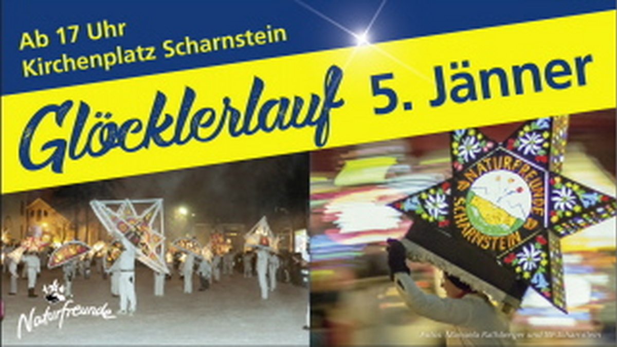 Wie jedes Jahr am 5. Jänner - dem Vorabend der Heiligen Drei Könige - durchlaufen Glöckler als Lichtgestalten mit wunderschönen , leuchtenden, handgefertigeten Kappen der Naturfreunde und vielen weiteren Vereinen den Ortskern in Scharnstein, vertreiben mit ihren Glocken die bösen Geister und bringen Heil und Segen. Für Zuschauer ein einzigartiges Spektakel!