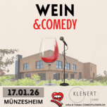 4 Weine & 3 ComediansWenn eine Weinprobe von Startup Winzer David Klenert mit einem Auftritt von drei ausgewählten Comedians kombiniert wird, erhält man einen Abend mit Erinnerungsfaktor.Wir laden Sie ein bei unserem Wein & Comedy Event dabei zu sein. Im kleinen exklusiven Rahmen erwartet Sie eine Kombination aus vier verschiedenen Weinen und Live-Comedy. Datum: 17.01.2026 (Samstag) Einlass: 19:30 Uhr Programmstart: 20:00 Uhr Programmende: 22:30 Uhr Drei Top-Comedians aus dem deutschsprachigen Raum die unter anderem im TV und verschiedenen Comedy Formaten, wie Quatsch Comedy Club, NightWash und BrosComedy zu sehen sind, bringen jeden Lachmuskel zum Beben. Ein Moderator präsentiert zwischen der Weinprobe einen Comedian und sorgt ordentlich für Stimmung. Das ist garantiert! Neben einem geschultem und freundlichen Serviceteam, erwartet Sie eine Kombination von leckeren Klenert Weinen und zum Start ein Secco-Rosé, gepaart mit einer Unterhaltung der Extraklasse. Lassen Sie sich begeistern und verbringen Sie einen unvergesslich lustigen und kurzweiligen Abend mit Ihren Liebsten. Hinweis: Es wird kein Essen geben.