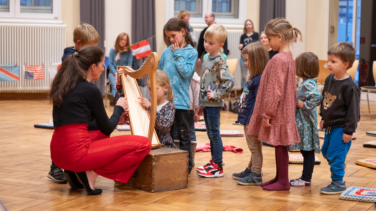 Wie wäre es, die Welt einmal auf einem fliegenden Teppich zu umrunden? Die Harfenistin nimmt ihre Passagiere mit zu einer „Reise um die Welt“. Im Gepäck hat sie Harfe, Schatzkiste, Musik aus verschiedenen Ländern, einige Rätsel und viele Überraschungen. Alle Kinder dürfen auch auf der Bühne mitwirken. Ein Kinderkonzert zum Mitmachen und Träumen, zum Erforschen und Entdecken, zum Erkennen, Verstehen und sich trauen! Seit Jahren begeistert die renommierte Musikerin (31 CDs) europaweit Kinder und Erwachsene mit diesem Konzert auf großen und kleinen Bühnen, in Schulen und Kindergärten. U.a. Schwarzwaldfestival – Moselfestwochen – Landesbühne Esslingen – Sockenkonzerte Köln – Museumsinsel Hombroich – Bodenseefestival – Hohenloher Kultursommer – Interlaken Classics/CH – Villa Musica Mainz – Kronberg Academy Classic for Kids u.v.m.