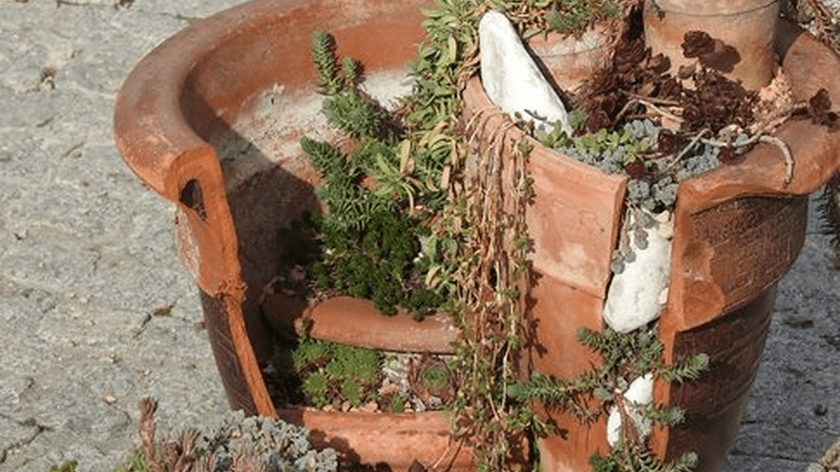 Aus Tontöpfen und -scherben, Steinen und Kies bauen wir einen Minigarten und bepflanzen und dekorieren ihn mit Schmuckstücken aus der Natur.