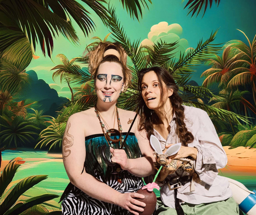 Ein musikalisches Abenteuer-Theater für alle ab 5 Jahren von Mathias Schuh/die theaterachse, mit Karoline Schragen und Lydia Nassal; Dauer: ca. 50 Min. Die theaterachse erzählt Robinson Crusoe neu – frech, berührend und ganz ohne Menschenfresser. Zwei Mädchen aus völlig unterschiedlichen Welten stranden als Achtjährige nach einem Sturm auf einer einsamen Insel. Eine kommt aus einer europäischen Hafenstadt, die andere von einer kleinen Südseeinsel. Mit Witz, Musik und Einfühlungsvermögen erleben wir, wie sie Angst, Einsamkeit und erste Begegnungen meistern, einander verstehen lernen und eine Freundschaft entsteht, die weit über die Rettung hinausreicht. Klassischer Stoff modern, leicht und für jedes Alter – ein Bühnenabenteuer voller Herz und Fantasie. Der „theaterachse“ gelingt es immer wieder mit ihren musikalischen und heiteren Bearbeitungen klassischer Stoffe Inhalte ins Heute zu holen und das Publikum mit Einfallsreichtum und Leichtigkeit zu verzaubern. Ein musikalisches Abenteuer-Theater für Besucher ab 5 Jahren von Mathias Schuh, inspiriert von Robinson Crusoe von Daniel Defoè. Spiel: Karoline Schragen und Lydia Nassal Stück/ Musik/ Bühne und Regie: Mathias Schuh