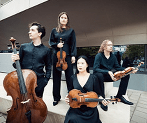 Das vielfach preisgekrönte Motus Quartett wurde 2022 gegründet und besteht aus Tim de Vries (Niederlande), Karla Križ (Kroatien), Salvatore Borrelli (Italien) und Domonkos Hartmann (Ungarn). Es zählt zu den spannendsten Ensembles seiner Generation. Die vier Musikerinnen studieren bei Johannes Meissl an der mdw und erhielten prägende Impulse u. a. von Hatto Beyerle, Valentin Erben, Peter Schuhmayer und dem Jerusalem Quartet.