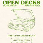 DJ Sounds in der Nexus Bar in Kooperation mit Kulturleinwand Saalfelden Das Kunsthaus Nexus öffnet die Bühne für alle, die Musik leben und teilen wollen! Bei der neuen Kulturleinwand Open Decks-Reihe steht jeden Abend ein Host-DJ im Mittelpunkt, der das Genre vorgibt – und alle anderen sind eingeladen, sich mit eigenen Sets einzuklinken. Zum Auftakt hostet OSDillinger den Abend und bringt feinsten House-Sound ins Nexus. Ob du erfahrener DJ bist oder zum ersten Mal auflegst – hier zählt der gemeinsame Vibe, das Entdecken neuer Sounds und der kreative Austausch. So funktioniert’s: Das Online-Anmeldeformular wird zwei Wochen vor dem Event freigeschaltet. Dort kannst du dich unkompliziert für ein Slot anmelden. Die Plätze sind begrenzt – also stay tuned! Komm vorbei, hör rein, tanz mit oder greif selbst zu den Decks. Open Decks ist eine Einladung an alle, die Musik lieben – egal ob hinter dem Mixer oder davor auf der Tanzfläche. Be part of the sound. Be part of the culture. Be part of the night.