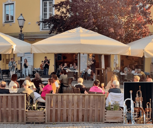 Wie immer geplant als Open Air im Gastgarten des Café Bistro Leutold.
