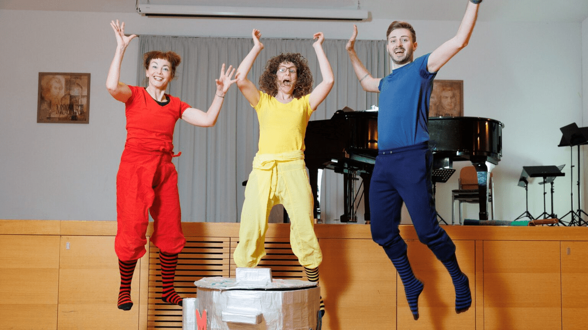 Neugierig und verspielt gehen sie der Musik und der Bewegung auf den Grund. Mit Tanz, Stimme und Clownerie kochen sie gemeinsam mit dem Publikum einen lebendigen Musik.Koch.Topf voller Fantasie, Klang und Begegnung.Ein interaktives, fesselndes und musikalisches Abenteuer für Kinder, in dem die drei Spruffofaldi auf gemeinsame Reise gehen. Dabei kommen sie ganz ohne Sprache aus! Sie entdecken den Musikkochtopf, der die ein oder andere Überraschung bereithält. Außerdem lernen sie eine Vielzahl von Instrumenten kennen, singen mitreißende Melodien, und lernen dabei stets voneinander.
