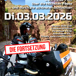 Juley Schleifer bringt die Fortsetzung seines „Grandes Alpes“ Motarrad-Reisefilms in den Freiraum: „Über die höchsten Pässe und durch die schönsten Schluchten“.