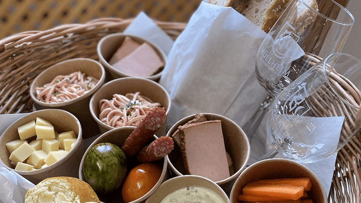 Der Rebenexpress verbindet Picknick und Weinproben mit einer romantischen Tour durch die Müllheimer Weinberge. Bitte einsteigen und los geht's. Es ist alles für Sie vorbereitet: exklusive Weine, gefüllte Picknickkörbe und eine herrliche Landschaft mit Blick auf den Schwarzwald und die Vogesen. Wir starten zur Erlebnisfahrt mit dem Rebenexpress an der Tourist-Information Müllheim auf dem Markgräfler Platz. Unser Weinpartner, Winzergenossenschaft Britzingen aus Müllheim-Britzingen, begrüßt die Fahrgäste mit einem Glas Winzersekt. Dann heißt es einsteigen und los geht die Fahrt in die Weinberge und zu einem besonders schönen und aussichtsreichen Platz in den Reben. Dort wird es einen entspannten Picknickstopp geben: Die Picknickkörbe, bestückt vom Winzerhof Rüdlin , sind mit allerlei Leckereien gefüllt. Jeweils 2 Personen erhalten einen gemeinsamen Korb. Dieser darf, ebenso wie die Weingläser, mit nach Hause genommen werden. Während der Rebenfahrt bzw. beim Picknickstopp werden bei einer fachkundigen Weinprobe fünf Markgräfler Weine vorgestellt und verkostet. Schließlich geht es mit dem Rebenexpress wieder zurück zum Markgräfler Platz. Dauer ca. 3 Stunden, bitte Picknickdecke nicht vergessen. Preis für 2 Personen: 98 Euro (inkl. Fahrt, Weinprobe, gefüllter Picknickkorb, 1 Flasche Mineralwasser, 2 Weingläser) Die Veranstaltung findet bei jeder Witterung statt und ist nicht barrierefrei.