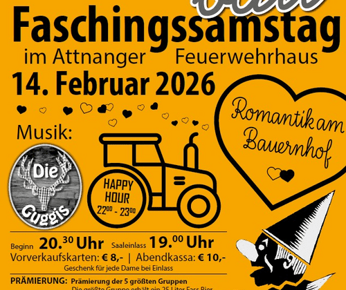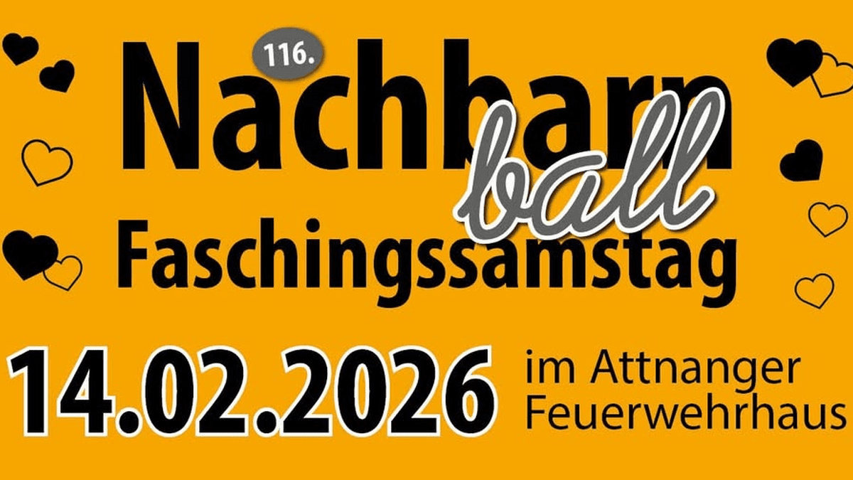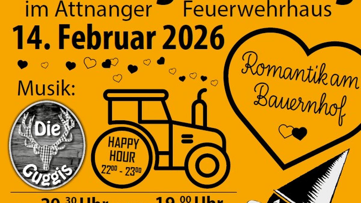 Das erwartet euch beim Nachbarnball:Partystimmung mit den ,,Guggis": Ab 20:30 Uhr übernehmen ,,Die Guggis" das Kommando und sorgen mit bester Partymusik dafür, dass die Tanzfläche glüht. Valentins-Special für die Damen: Passend zum romantischen Motto wartet auf jede Dame beim Einlass ein kleines Überraschungsgeschenk.Happy Hour: Von 22:00 bis 23:00 Uhr gibt es Getränke zu besonderen Preisen. Gruppen-Wettbewerb: Es lohnt sich, Freunde einzupacken! Die fünf größten Gruppen werden prämiert. Der Hauptpreis für die stärkste Truppe? Ein 25-Liter-Fass-Bier!Dresscode: Bauernhof-Romantik (Tracht, Karohemd, Landhaus-Look)
