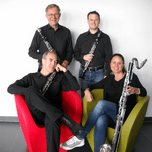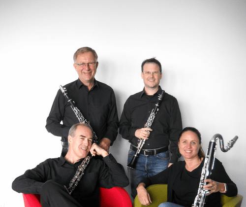 AIR-O-FLOTT ist der Name des seit 10 Jahren bestehenden Klarinettenquartetts, das am Sonntag durch die Konzertstunde führt. Das Ensemble, bekannt durch seine vielen eigenen Arrangements, bringt einen Querschnitt von sogenannter klassischer Musik bis zu Komponisten der Gegenwart. Dabei kommen verschiedene Klarinetteninstrumente, von der hohen Es-Klarinette bis zur Bassklarinette zum Einsatz.