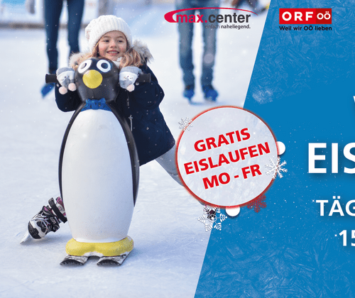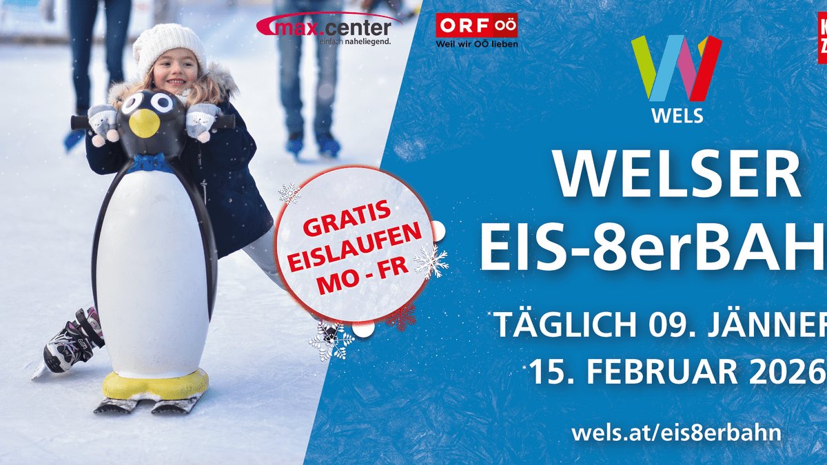 Für Schulen: Montag - Donnerstag ab 9:30 Uhr (nur bei Voranmeldung unter 07242 67722-0 oder per Mail unter office@wels.at)Eintritt & SchuhverleihMontag-Freitag: GRATIS (WICHTIG: bitte holt euch trotzdem euer Gratis Ticket bei der Kassa ab!)Samstag und Sonntag:Kinder (bis 14,9 Jahre): 4 €Erwachsene 6 €,ermäßigter Eintritt 4,- € (Menschen mit Beeinträchtigung) Helmverleih: gratis (je nach Verfügbarkeit, +Pfand)Eislaufhilfe (Pinguin): gratis (je nach Verfügbarkeit)Kinderkufen: € 2,- (+ Pfand)Schließfach: € 2,50 (+Pfand)Schuh- und Helmverleih: Schuhe Erwachsene € 6,50 Schuhe Kind € 4,50 (+Pfand)Ausweishinterlegung oder Pfand i.H.v. € 40,-