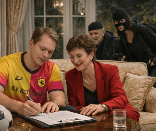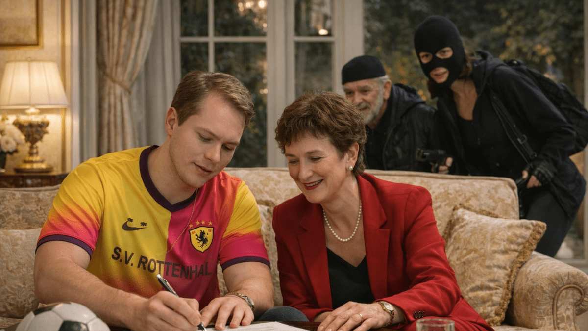 Ein frühlingshafter Vormittag im Hause Weiler. Sebastian Weiler steht eine Karriere als Profifußballer bevor. Deshalb werden die Präsidentin und der Trainer des Vereins erwartet, um einen entsprechenden Vertrag zu unterzeichnen. Zur gleichen Zeit überfallen zwei maskierte Bankräuber die örtliche Sparkasse und flüchten vor der Polizei auf das Weiler’sche Grundstück.