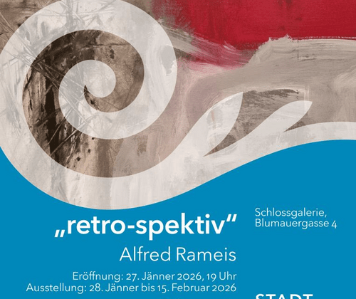 „retro-spektiv“Ausstellung von Alfred Rameis 45 Jahre intensive Beschäftigung mit Kunst Unverwechselbar ist die Kunst des Steyrer Künstlers Alfred Rameis, der unter dem Titel „RETRO-SPEKTIV“ in der Schlossgalerie Steyr Werke aus 45 Jahren seines künstlerischen Schaffens ausstellt. Wollte man seine Bilder mit einem Begriff beschreiben, so würde demnach am ehesten „Abstrakter Expressionismus“ zutreffen. Seine oft großformatigen Bilder verzichten auf jede Form von Darstellung der Realität. Das Anliegen seiner Malerei ist ein raffiniertes Zusammenspiel von Fläche, Form, Farbe und Linie, das in seinen Bildern Spannung erzeugen und Raum für Interpretationen lassen soll. Farblich reduziert sind seine Arbeiten in Schwarz-Weiß und Erdtönen gehalten. Rameis bezeichnet sich selbst als Schwarz-Weiß-Fetischist – und komponiert seine Arbeiten mit grafischen Elementen und Linien, wobei ihm als Medium jedes Mittel recht erscheint, ob Leinwand, Karton, Papier, Textil oder anderes.Rameis, Autodidakt aus Überzeugung, kritischer Betrachter und Denker, arbeitet abseits jedes Mainstreams und geht in seinen Arbeiten, die malerisch, grafisch und im plastischen Bereich liegen, seinen unbedingten und authentischen Weg.In diesen Jahrzehnten seines künstlerischen Schaffens entstanden seinen Angaben nach über 1500 Werke, die sich in privaten und öffentlichen Sammlungen befinden, in Galerien, Hotels und Kanzleien – also nicht nur in klassischen Kunsträumen.Die Ausstellung, die von 28.1. bis 15.2.2026 in den oberen Räumlichkeiten der Schlossgalerie Steyr zu sehen sein wird, verspricht viel Interessantes. Ausstellung: 28. Jänner bis 15. Februar 2026Di–Fr: 10–13 UhrDi, Do, Fr: 13:30–17 UhrSa, So: 10–17 UhrDer Künstler ist von Freitagnachmittag bis Sonntag anwesend.