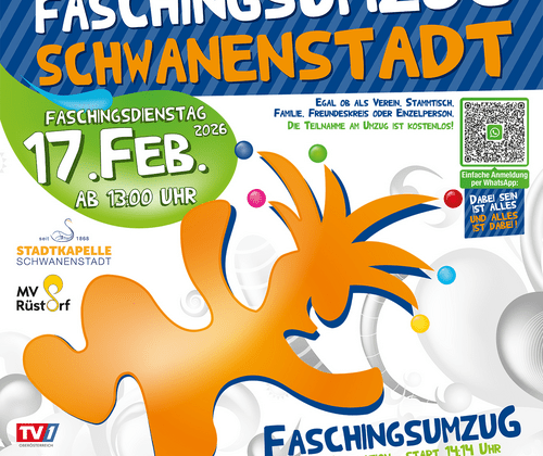 FADI26 - FASCHINGSUMZUG am Faschingsdienstag, 17. Februar 2026 ab 14:14 Uhr, Sparkassenplatz Schwanenstadt