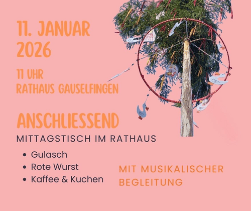 Die NZ Schnägäg lädt ein! Narrenbaumstellen mit anschließendem Mittagstisch im Rathaus: - Gulasch - Rote Wurst - Kaffee & Kuchen und musikalischer Begleitung