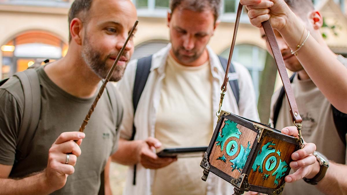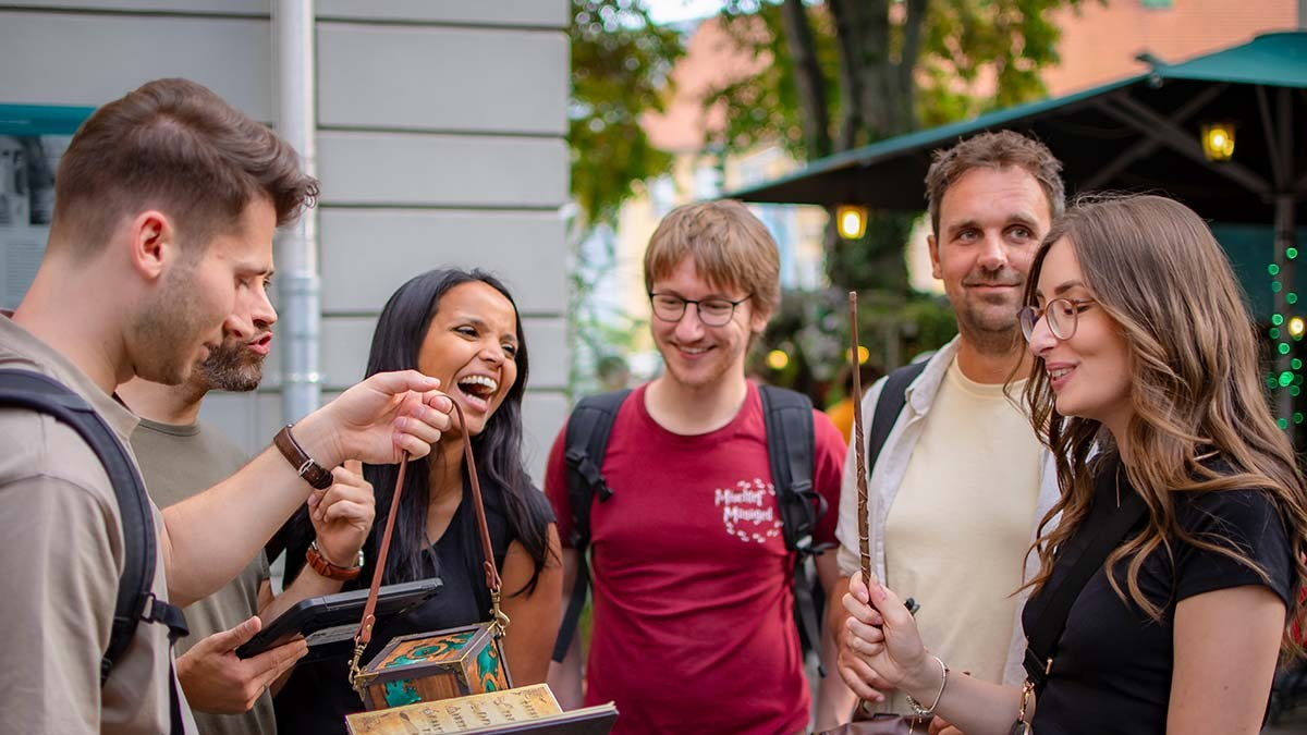 Magie in Berlin Magie liegt in der Luft, sobald ihr in Berlin an der Litfaßsäule mit der goldenen Krone ankommt und von der Spielleitung begrüßt werdet. Mit Auroras magischem Würfel steht ihr plötzlich im Mittelpunkt einer zauberhaften Story: Leuchtende Funken, rätselhafte Spuren und mysteriöse Gegenstände führen euch zu magischen Geistern, Trollen und Drachen, während ihr einfallsreiche Zaubersprüche nutzt und eure Neugier füttert. Dieses Outdoor Escape Game Berlin verbindet aufregende Action mit Sightseeing-Feeling, denn ihr löst an der frischen Luft abwechslungsreiche, anspruchsvolle Aufgaben und wachst Schritt für Schritt als Team. Am Ende wartet ein stimmiger Abschluss mit Foto und Rätselübersicht – seid dabei und zeigt, was in euch steckt! Inhalt Outdoor Escape Game "Rätseltour: Auroras magischer Würfel" in Berlin Einweisung durch einen erfahrenen Instruktor Benötigtes Spielmaterial Lösung von spannenden und abwechslungsreichen Aufgaben Abschlussfoto und Rätselübersicht Teilnehmer Gutschein gültig für 4 Personen Gruppengröße: 2–12 Personen Zuschauer und Begleitpersonen nicht möglich Dauer Ca. 2 Stunden Ausrüstung & Kleidung Wird gestellt: Spielmaterialien und Rätselgegenstände Teilnahmebedingungen Mindestalter: 10 Jahre Teilnahme für Personen mit Handicap nach Absprache mit dem Veranstalter möglich