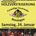 Niederrimsinger Holzversteigerung mit Bewirtung. Für Essen und Trinken wird gesorgt. 20 Doppel-Ster, Anschlag 130 €. Anschließend Bewirtung.