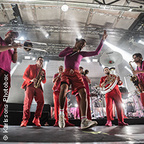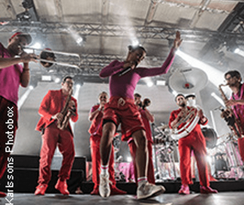 Seit über 15 Jahren mischt die Brassband aus München die Musikszene auf: Hip Hop, Pop und Rap, Funk, Soul, Ragga und Dance mit Blechbläsern und Schlagwerk in Mannschaftsstärke dargeboten, ein wahrlich ungewöhnlicher Mix - und ein erfolgreicher dazu. Aus den spontanen Street-Gigs der Anfänge sind längst Hallenkonzerte geworden. Doch Moop Mama wollen nicht nur unterhalten, sondern ruft in ihren gesellschaftskritischen und ironischen Texten auch zu mehr Solidarität auf. Zahlreiche Alben stehen mittlerweile zu Buche, zuletzt 2024 die mit der neuen Frontfrau Älice - "a perfect match", wie sie es nennen - veröffentlichte Platte "Wieder Laut". Wer im Sommer aufs Konzert kommt, sei vorgewarnt: Dieser Abend wird eine einzige laute Party! (eigen/dob)
