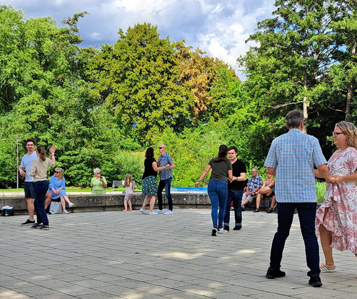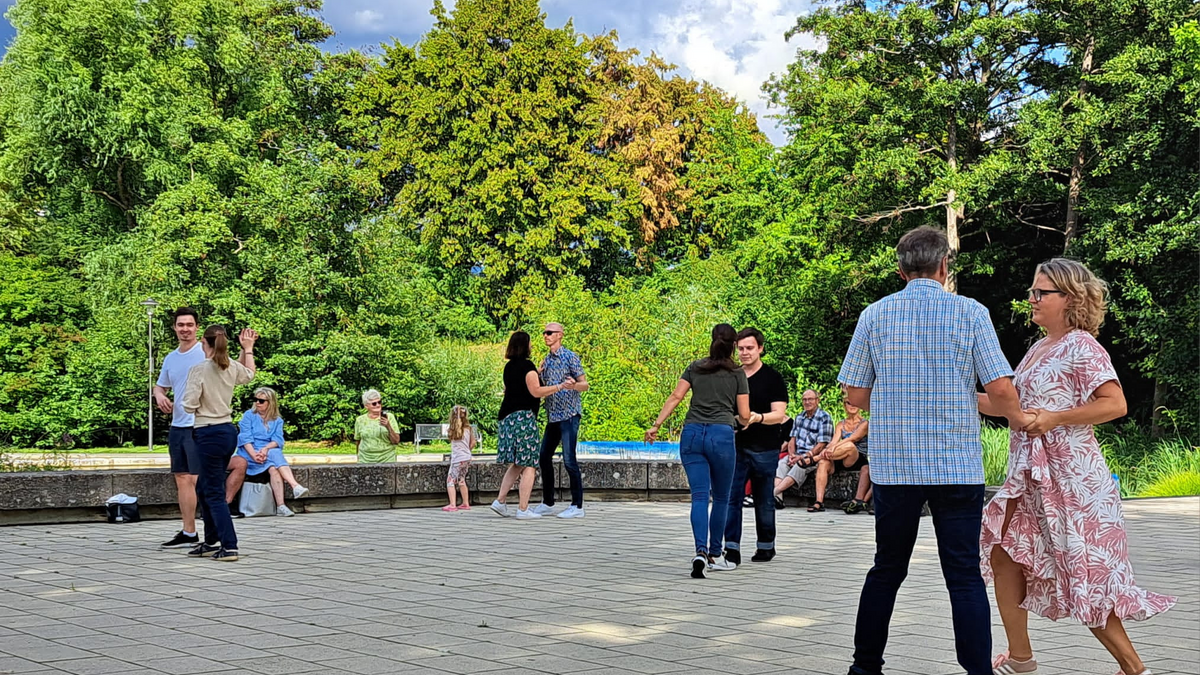 Erste Schritte in Standardtänzen lernen - einfach mitmachen und Spaß haben. In entspannter Atmosphäre im Sole-Aktiv-Park und mit einem lockeren Spruch auf den Lippen möchte Claus Sieber von der Tanzschule Sieber Ihnen die ersten Schritte in Standardtänzen wie langsamer Walzer, Cha Cha Cha und Discofox näher bringen. Bei schlechtem Wetter findet die Veranstaltung nicht statt. Infos zur tansschule Sieber: https://wir-tanzen.com/