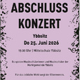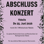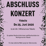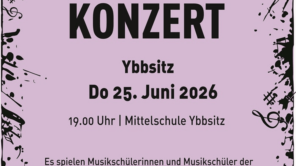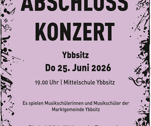 Am Donnerstag, 25. Juni findet in der Mittelschule Ybbsitz das Abschlusskonzert der Zweigestelle Ybbsitz der Musik- und Kunstschule Waidhofen/Ybbstal statt. Schülerinnen und Schüler der Gemeinde spielen ein abwechslungsreiches Programm von verschiedenen Solisten, Vocal- und Instrumentalensembles.