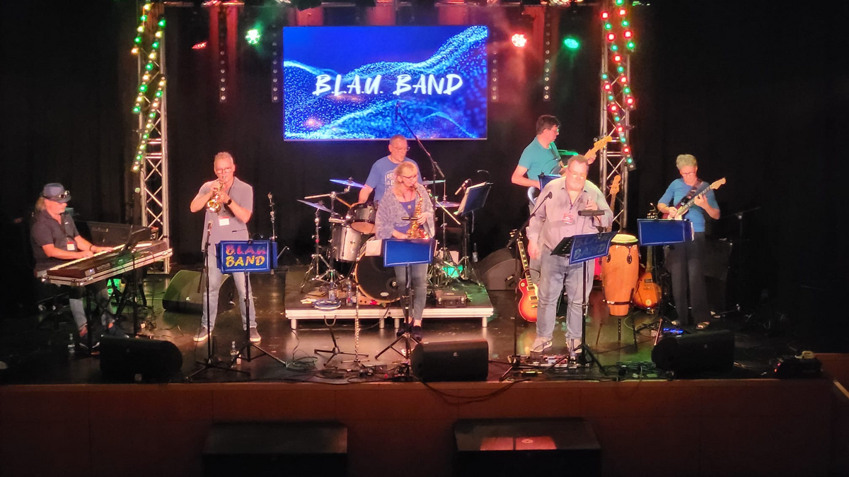 Sieben leidenschaftliche MusikerInnen, einige davon bekannt im Kreis Calw auch durch andere Ensembles wie Stimm3, JazziCa, Lehrerband Althengstett nehmen Sie mit auf eine Reise in die Zweisamkeit. Aus der großen Vielfalt an Epochen und Stilen werden groovige Songs zu hören sein, die die Zweisamkeit in jeglichen Aspekten untermalen. Das Repertoire zieht sich vom einfachen Blues über fetzige Latin Rhythmen, mitreißenden Rock- und Popsongs und einfühlsamen Balladen bis hin zu anspruchsvollen Jazz Stücken und resultiert in einem abwechslungsreichen Programm – für jeden ist etwas dabei! Songs bekannter Interpreten wie Joe Cocker, Caro Emerald, Michael Buble, Pharrell Williams, Nik Kershaw, etc. werden in einer eigenen Interpretation dargeboten, aber auch instrumentale Stücke sind dabei. B.L.A.U. ist nicht nur der Bandname, auch die Bühnenperformance ist blau und besticht durch eine einzigartige Mischung aus Energie, Leidenschaft und Spielfreude. Die Musik animiert sowohl zum Zuhören und Genießen als auch zum Tanzen und Mitsingen.