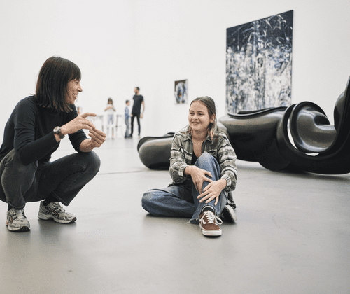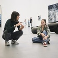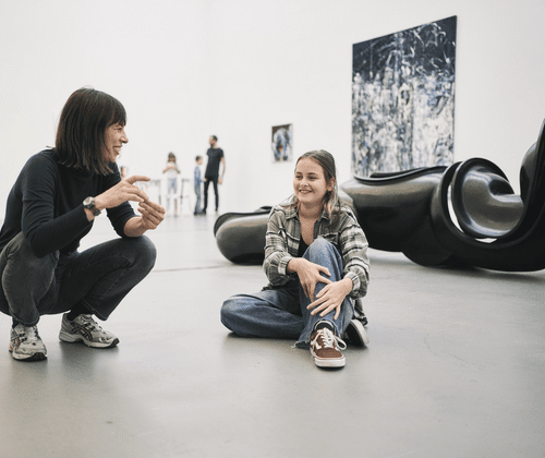 Das Logo einer Mar­ke? Ein Blu­men­mo­tiv auf einer Blu­se? Ein geo­me­tri­sches Stoff­mus­ter? Wir sind lau­ter und den­ken uns eige­ne Bil­der und State­ments aus, die wir mit der Sieb­druck­tech­nik mit Papier­scha­blo­nen dar­über dru­cken. Es geht um Krea­ti­vi­tät, Aneig­nung und befrei­en­den Humor.
