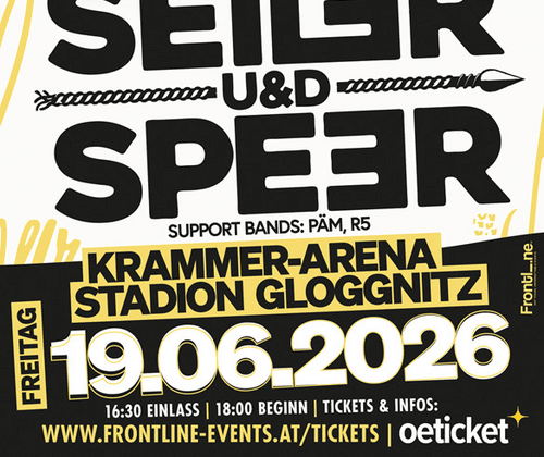 Anlässlich des 100-jährigen Jubiläums der Stadt Gloggnitz feiert die Stadtgemeinde mit einem musikalischen Höhepunkt: Seiler und Speer kommen am 19.6.2026 in die Krammer-Arena. Mit ihren größten Hits und ehrlichem Austropop sorgen sie für beste Stimmung und ein unvergessliches Konzerterlebnis. Die Stadtgemeinde Gloggnitz lädt die Bevölkerung sowie Gäste aus nah und fern herzlich ein, dieses besondere Jubiläum gemeinsam zu feiern.