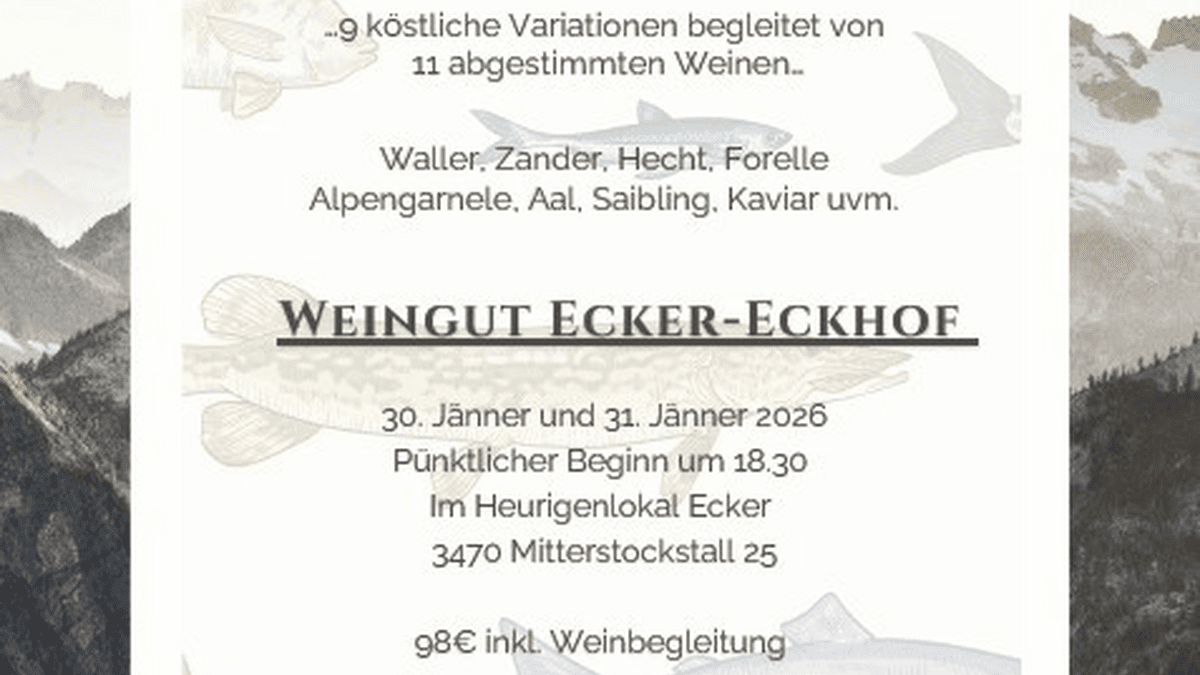 9 köstliche Fisch-Variationen, perfekt abgestimmt mit 11 ausgewählten Weinen aus dem Weingut Ecker-Eckhof.