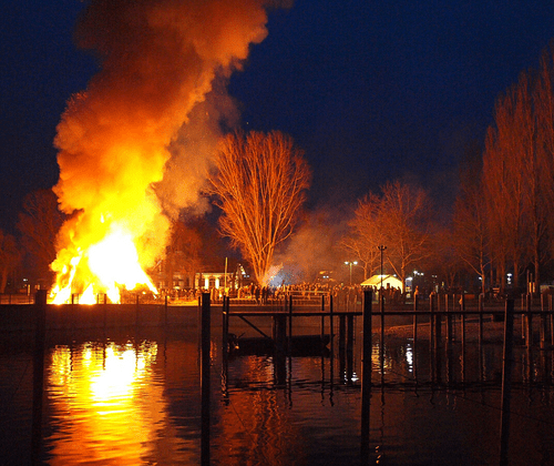 Das Funkenabbrennen der Funkenbuben Unteruhldingen findet in diesem Jahr am Samstag, 21. Februar 2026 um 19.00 Uhr am Hafenloch in Unteruhldingen statt. Seien Sie dabei, wenn wie üblich am Wochenende nach Aschermittwoch das traditonelle Funkenfeuer angezündet wird - ein alter Feuerbrauch, der noch heute im schwäbisch-alemannischen Raum weit verbreitet ist. Dabei ist der Ursprung dieses Brauches unklar, obwohl er außergewöhnlich früh schon belegt ist. Allerdings wird davon ausgegangen, dass das Funkenfeuer auf einen heidnisch-germanischen Brauch zur Vertreibung des Winters zurückgeht. Organisiert wird das Funkenfeuer durch die Funkenbuben Unteruhldingen, die den Funken aus Holz bauen und mit einer gebastelten Hexe an der Funkenspitze versehen - fällt diese dem Feuer zum Opfer, was besonders Glück verheißt, ist die Freude groß. In Anlehnung an die alemannische Fastnacht wude die Verbrennung einer Hexenpuppe auf dem Funken im 19. Jahrhundert eingeführt.